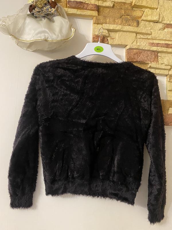 Великолепный мягкий на первый взгляд выглядит как с меха на пуговицах из качественного полиамида на S размер Размеры длина 52, ширина в груди42, рукав 60 Ткань тянется, но держит форму, насыщенного черного цвета