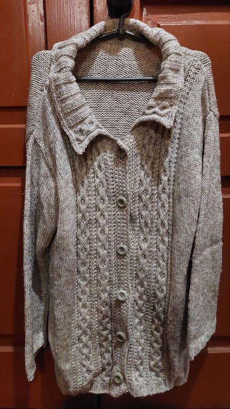 Тепла кофта на гудзиках з карманами. Длина 79см, рукав 48см, пог 56см, поб 59см.