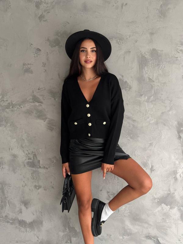 В наличии🔥 Базовая модель кардигана с аккуратным V-образным основанием Арт. 23105 Тканина машинна в’язка Размер универсальный 42-46 • ОГ 53 см • Длина 52см 🏷️Цена: 950 грн