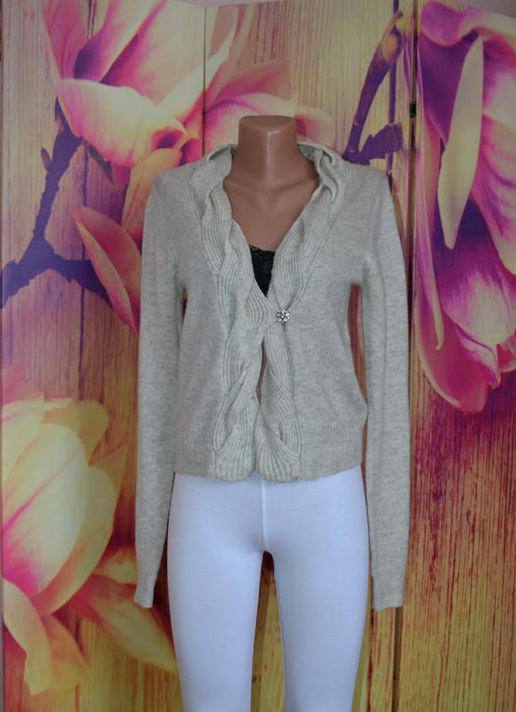 Вязаный, красивый кардиган, в очень хорошем состоянии. евро р. 36/38, ширина - 41 см, рукав - 68 см, длина - 57 см (по спинке) 70% полиакрил, 20% полиамид, 10% шерсть