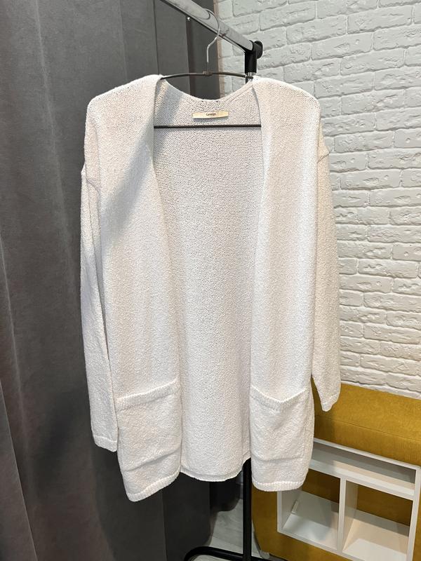 Белый кардиган, легкий, с карманами