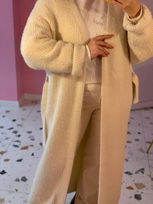 Молочный качественный теплый кардиган пальто из ангорки альпаки