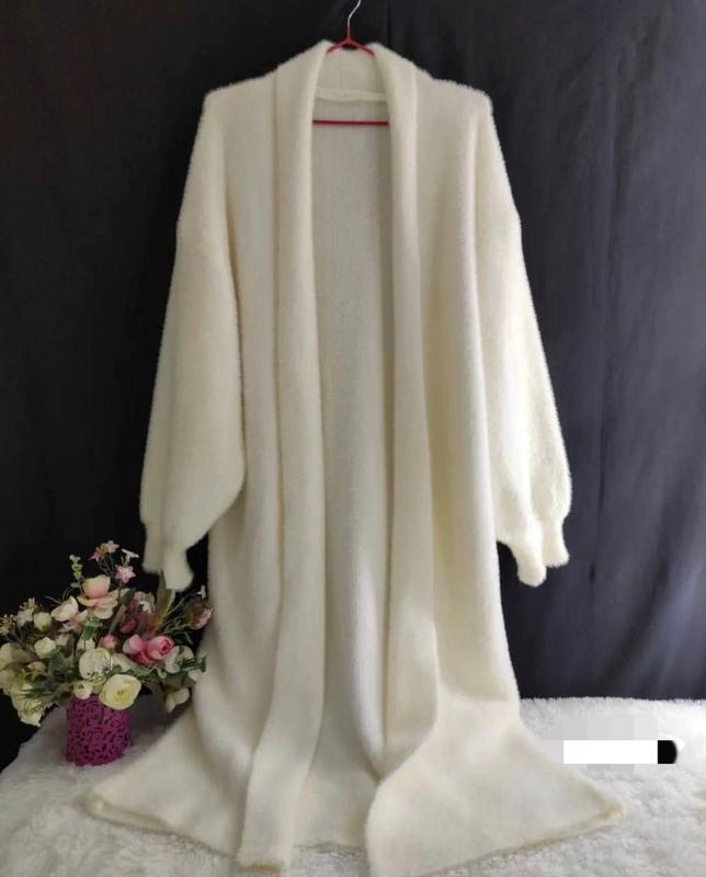 Білий пухнастий пальто кардиган з натуральним хутром песця