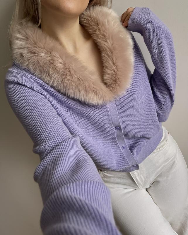 Кардиган зі штучним хутром в красивому пастельному кольорі від якісного шведського бренду &Other Stories 🌸 У складі присутня вовна 5%,та 5% натурального шовку Розмір М Комірець не знімається* Заміри:напівобхват грудей 47см, талії 45см,довжина 49 см Вартість на сайті зі знижкою 55£(2900грн) Стан нового,але присутній незначний нюанс на одному манжеті(фото в каруселі) не дірочка,трішки розійшлась нитка,на носку не впливає та на тілі не помітно У вартість враховано