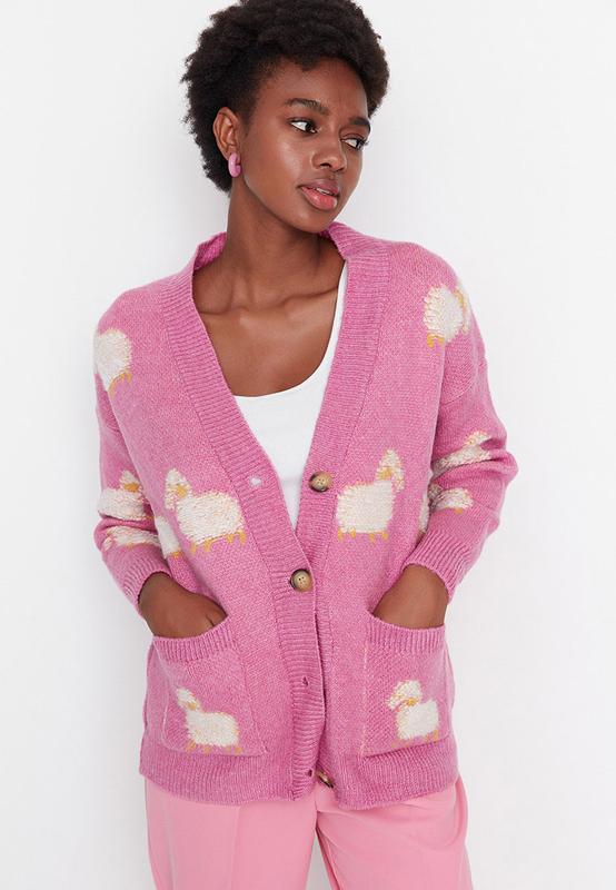 Замеры:пол обхват груди-53 см, длина - 62 см, длина рукава от горловины 66 см Очаровательный кардиган свободного кроя на пуговицах смотрится по-девочному мыло благодаря прямому узору в детском стиле - овечка. Жаккардовый кардиган с рисунком станет незаменимой вещью гардероба стильной девушки не только в прохладные дни осени и зимы, но и на протяжении всего года. Сочетайте женский вязаный свитер на пуговицах с брюками, юбками или джинсами для создания легких и расслабленных образов в офис, на школу или на встречу с друзьями. Trendyol является одним из самых популярных брендов турецкой одежды и