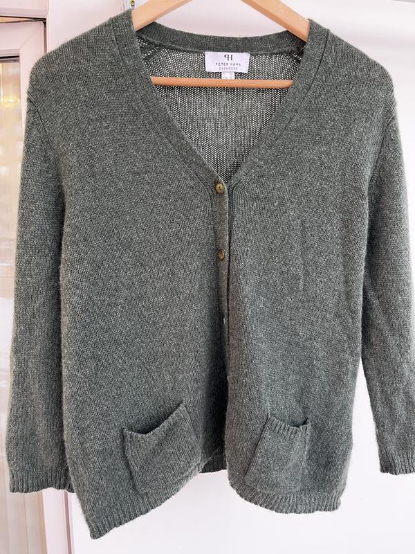 Кардиган дуже мʼякий і приємний в кольорі хакі( фото не передає кольору)Рукав 7/8. Є накладні кишені. ПОГ- до 51 см Довжина 60 см. Зацікавленим скину додаткові фото