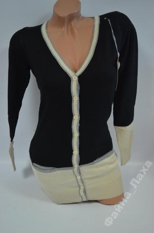 Красивая кофта кардиган 50% -шерсть 30% - кашемир 8% - еластан 12% - акрил цвет черный+беж длина-68см ПО груди 39-47 дл.рукава-56см ПО талии 37-45см есть 2 кармшка