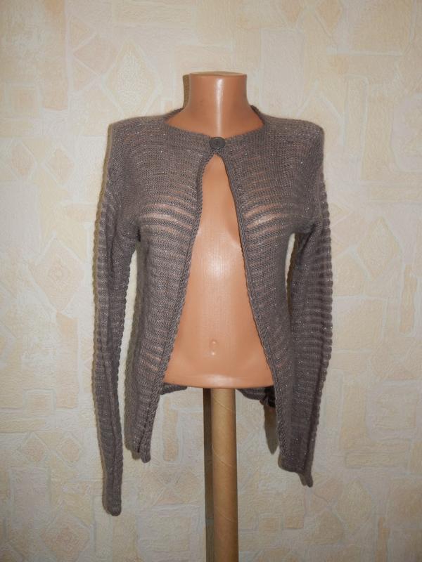 ПОГ по спинці 46-52см, рукав від горловини 82см, довжина 62см, низ 108см Нитки з тонкою металічною ниткою. Теплий, м’який, пухнастий, тонкий, вільна в’язка..