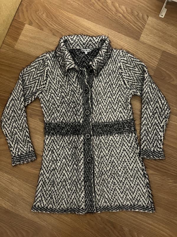 Продам стильную и теплую длинную кофту от британского бренда Voulez Vous. Она в отличном состоянии, без дефектов, идеально подойдет для осенне-зимнего сезона. Детали: Бренд: Voulez Vous Размер: 12 (на бирке), соответствующий размеру М Цвет: Черно-белый узор "елочка" Материал: 50% акрил, 40% полиамид, 10% полиэстер. Ткань мягкая и приятная на ощупь. Фасон: Длинная кофта-пальто, которая застегивается на пуговицы. Длина изделия - 82 см. Эта кофта - идеальное дополнение к вашему гардеробу. Она согреет в прохладную погоду и станет стильным акцентом вашего образа. Замеры: Полуобхват груди: 48 см Длина от высшей точки на плече до нижнего края: 82 см Длина рукава от края горловины до края рукава: 68 см Пишите, если у вас есть вопросы!