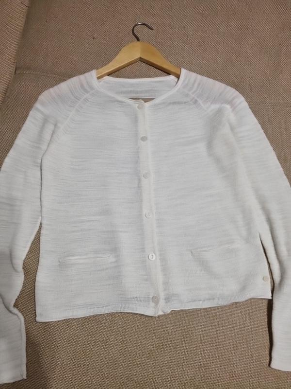 Стильний укорочений кардиган marc o'polo Бирки срезаны, ориентируйтесь по замерам Замеры общая длина от плеча спереди 48, рукав реглан тому меряю от шеи 68/48, пог 43 Ткань по ощущению это коттон, возможно с примесью вискозы