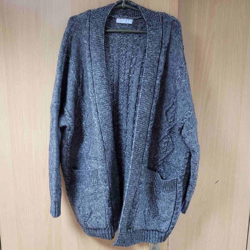Кардиган с карманами, плечо спущено, темно- серый. Новый, без бумажной этикетки, люкс сток. Обхват 150+, рукав от ворота 82, длина 79.