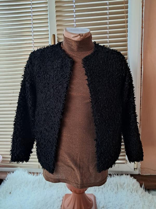 Теплая кофта эко мех, под каракуль, размер S, без застежек, легкая, мягкая грудь 45, длина 53, плечи 42, рукав 50