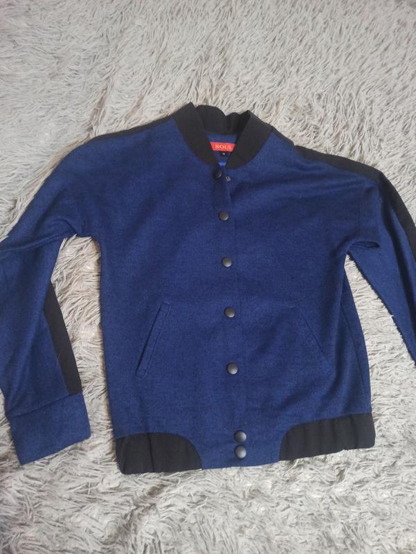 Женская кофта бомбер. Застегивается на кнопки Ткань напоминает трехнитку. Есть дефект - одна кнопка бурилась из ткани (последнее фото), при желании можно отремонтировать. Размер: М (но ориентируйтесь на замеры) Замеры: ПОГ - 47 см ПОС (по резинке снизу) 41-46 см Длина - 59 см Длина рукавов от горловины - 69 см.