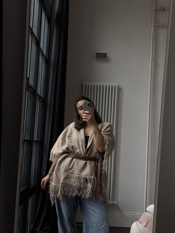 Новое мягкое пончо от Зара. Кожаный пояс не идет в комплекте, но если нравится такая стилизация, то я его подарю 😊
