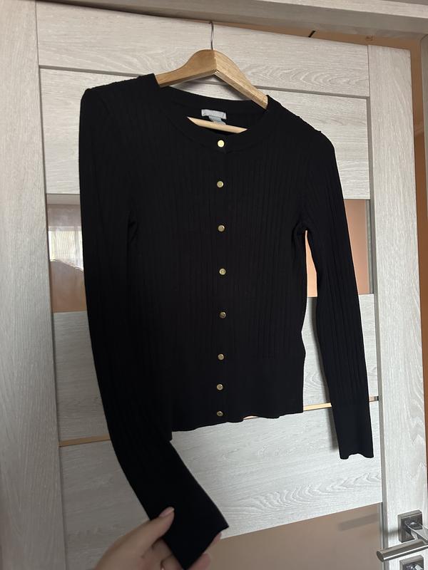 Черный кардиган с золотой фурнитурой Длина- 53 см Рукава- 64 см Талия - 39 см