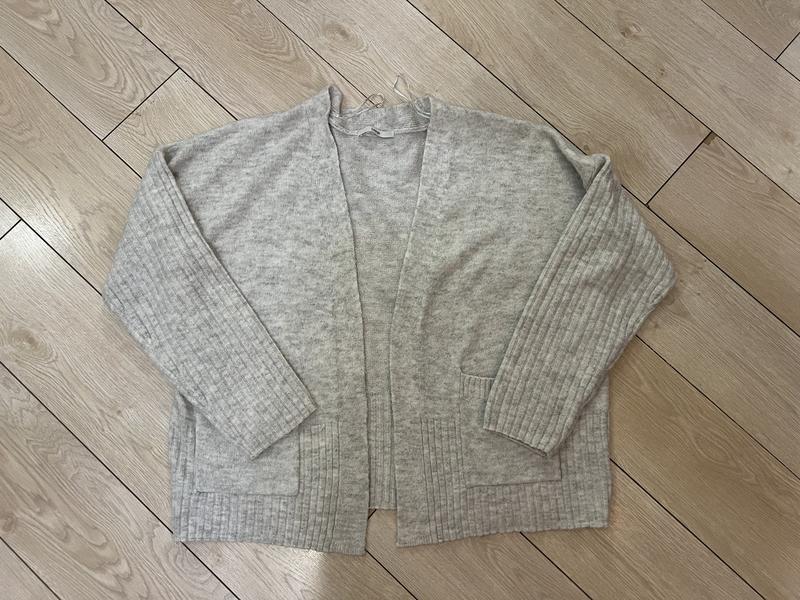 Серый кардиган, очень мягкий и приятный к телу. Без застежек. Размер л.