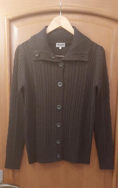 Кардиган шоколадного цвета в идеальном состоянии немецкой фирмы Blu motion. Повязка мягкая и приятная на ощупь.Тепленький.Без нюансов. длиж 66см рукав65 плечи 41 ног.50+