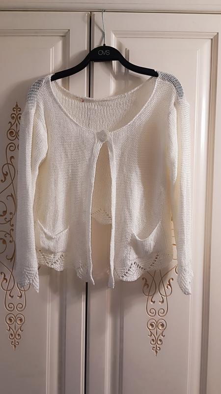Размер так не указан. Длина 42-52, ПОГ 46-48, рукав от шеи 54
