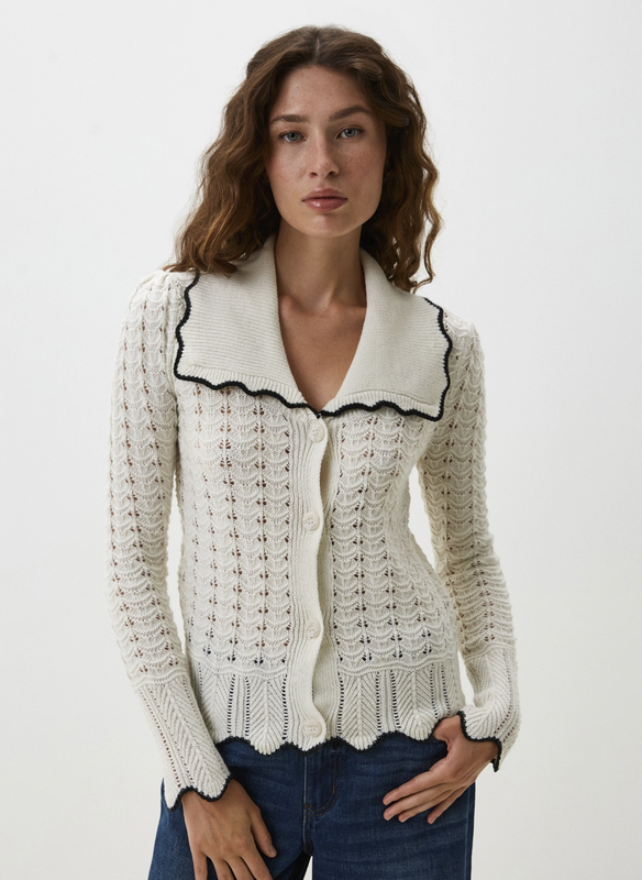 Красивый укороченный кардиган Манго с интересным фасоном. Красиво смотрится поверх топов и маек. Надевался дважды. Добавляю также фото на модели из магазина.