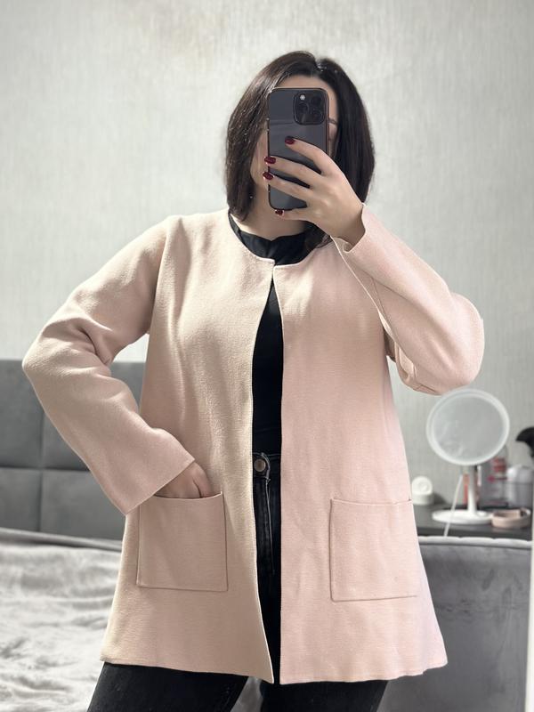 Пудровый кардиган Полуобхват в плечах - 42см Длина рукава - 58см Длина кардигана - 72см Полуобхват в ком - 51см Ткань тянется и плотная