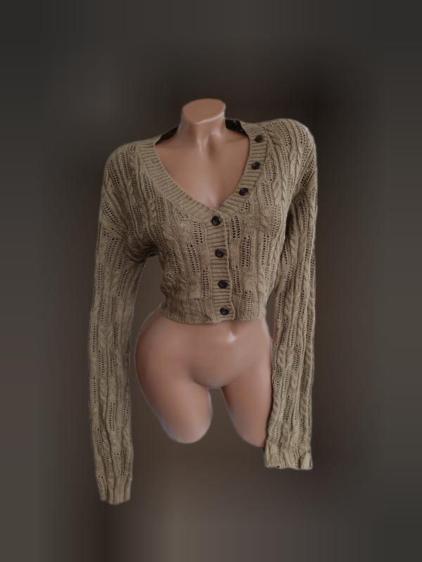 Очень красивая кофточка. Без дефектов. Цвет может немного отличаться от фото. Страна производитель Китай Тканина 50% котон, 50% акрил Размер 46 Длина изделия по спине 37 см Длина рукава 60 см Длина от плеча до плеча 54 см Полуобхват грудей 47 см Полуобхват низу кофтинки 45 см