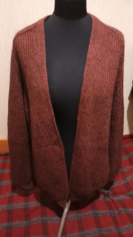 Майже новий, гарний, приємний на дотик, м'який кардиган неймовірного кольору. Без застібки. Склад: акрил, мохер, вовна. Заміри: довжина по спинці -72см, пог-51см, довжина рукава від горловини -83см.