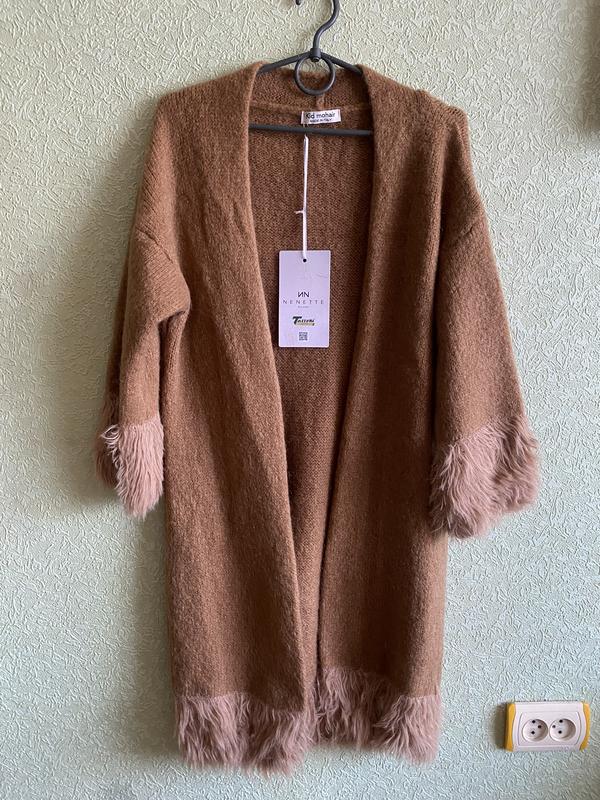 Кардиган вязаный из качественной нити, в состав которой входит мохер. За счет свободного кроя подойдет на несколько размеров. При покупке любой вещи из страницы друга в подарок по бесплатным вещам.