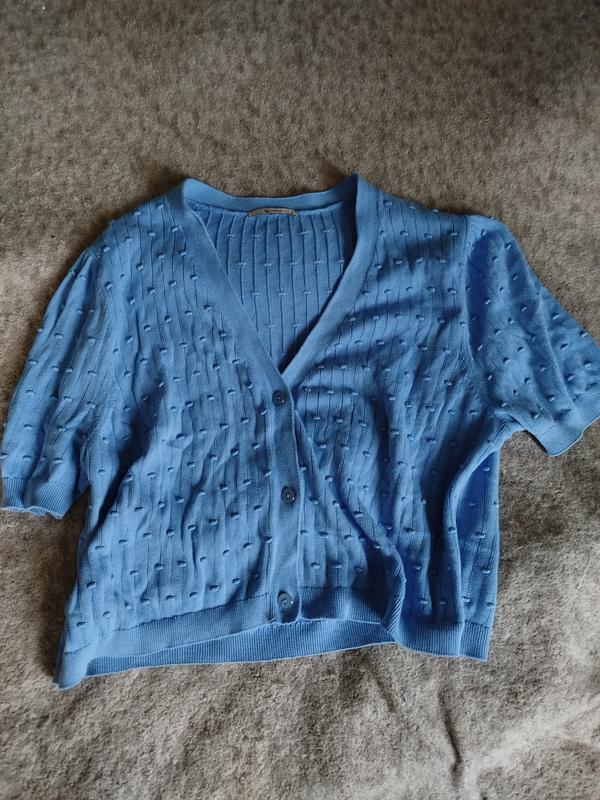 жіноча кофтинка, небесного кольору, приємна і дуже затишна. на гудзиках
