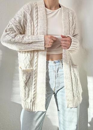 Размер указан 12-14 Кардиган чуть ниже попы, не длинный Материал акрил, белый , в очень хорошем состоянии без нюансов