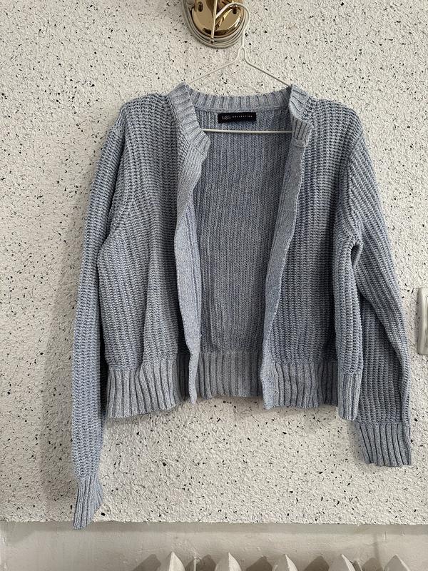 Короткий кардиган без пуговиц, приятный голубой оттенок