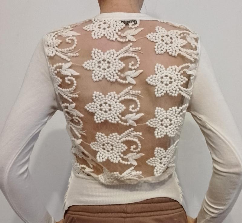 Сток. Состояние новой. Золотые пуговицы, как аксессуар. Кофта на завязках, защелкивается лентами.