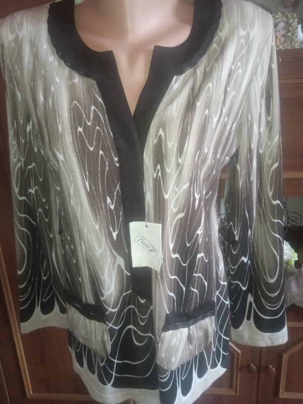 Кофта-кардеган нова, очень красивая и стильная, можно использовать как ковтой так и кардеганом. длина 70см. пол.обх.48см. довж.рукава 59см. довж.внут.шва рукава 43см В настоящее время сделали акцию 1+1=3 но третья вещь не должна превышать цену первых двух.