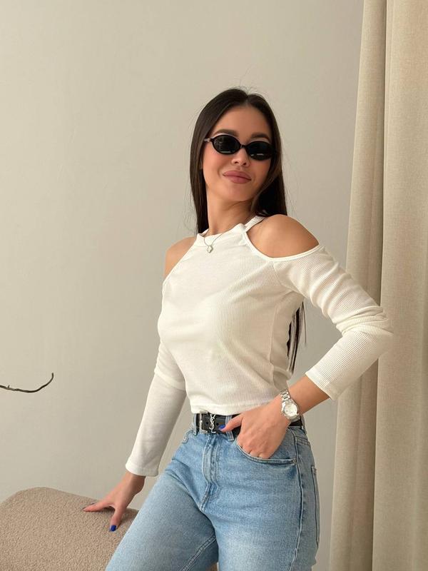 🔝Модный лонгслив с вырезами на плечах ➡️Размер: 42-44, 44-46 ➡️Ткань: рубчик (Турция) ➡️Цвет: черный, белый Цена:399 грн