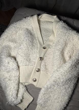 Кардиган тепленький и очень стильный Все пуговицы на городе ничего не отрывались,стан очень хорош Размер с-м Фото на себе отправлю в дырэкт Больше товара просматривайте в своем профиле🤍