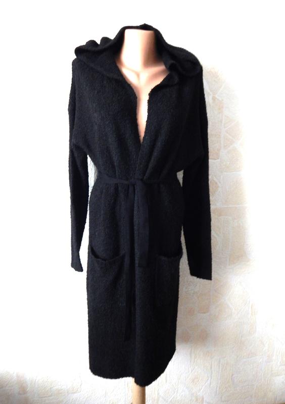 ПОГ 60-70см по спинці, полочка 31см, довжина рукава від горловини 78см, довжина 104см. Вільна в’язка, м’який. легкий. Високі розрізи, кармани, капюшон. Добре тягнеться.