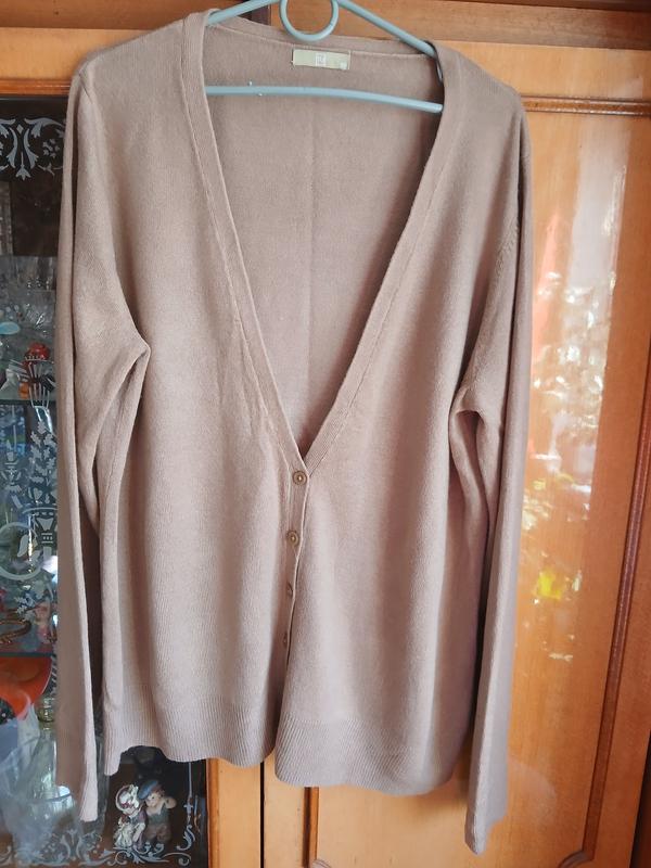 Джемпер женский бежевого цвета с переди на пуговицах.Размер 20 ( ПОГ 60 см, ПОБ 60 см. длина 72 см, длина рукава 70 см)