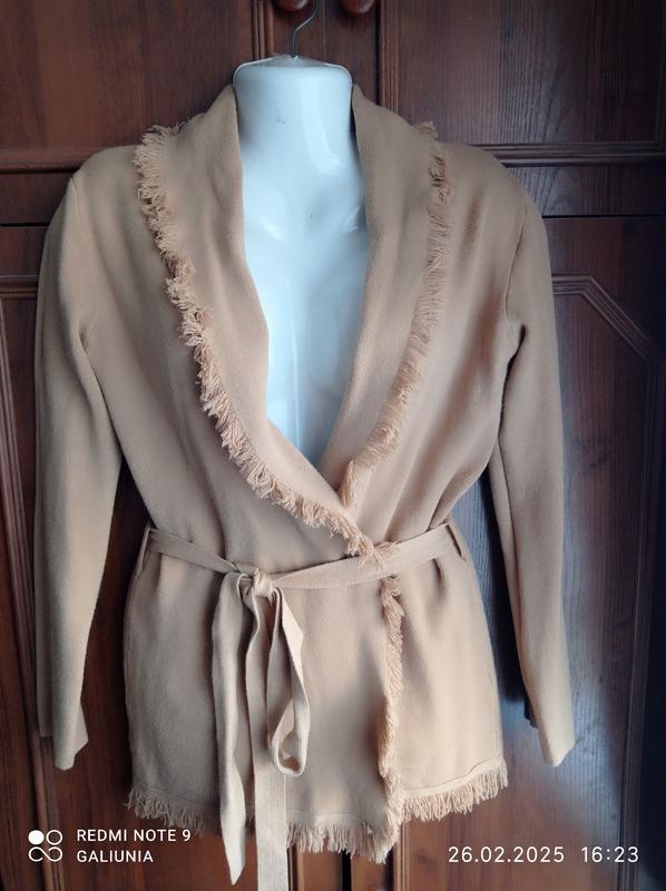 кофта кардиган с поясом, полупад груди 47 см, полуобхват кофты по низу 51 см, длина изделия 69 см, а длина рукава 58 см, плечи 43 см. хорошая фирменная вещь в идеальном состоянии.