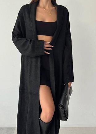 Классический кардиган, теплый и стильный🤍 Можно носить с поясом и без создавая каждый раз неповторимый образ Производитель: Турция Размер: универсальный Цвет: черный, серый, графит Длина 114см №1509