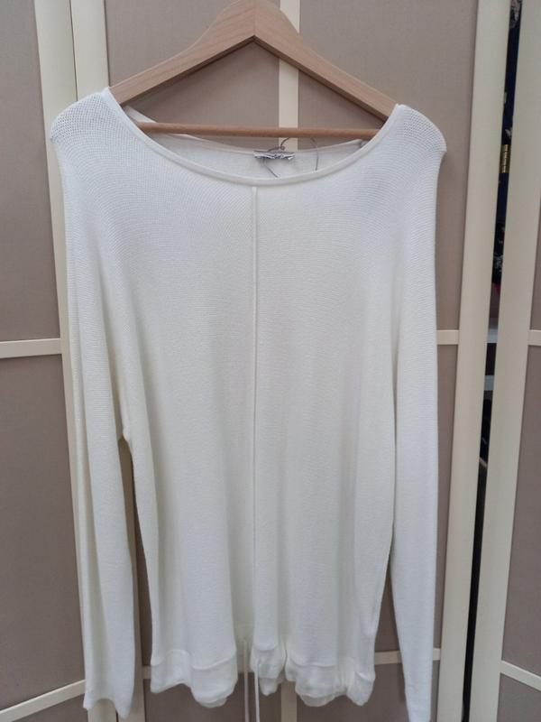 Кофта белая с круглым вырезом.Внизу на шнурок.Нова.Сток. ЗаМеры : об.гр. 58см,длина 70см., длина рукава от горловины 80см.
