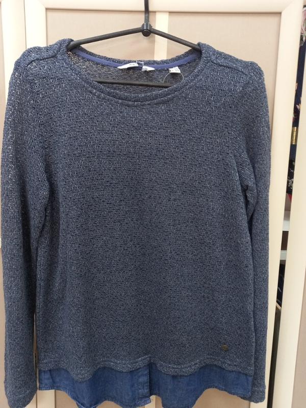Кофта внизу с имитацией джинсовой рубашки.Новая. Замеры: об. Гр. 45см., длина 64см., длина рукава 63см.