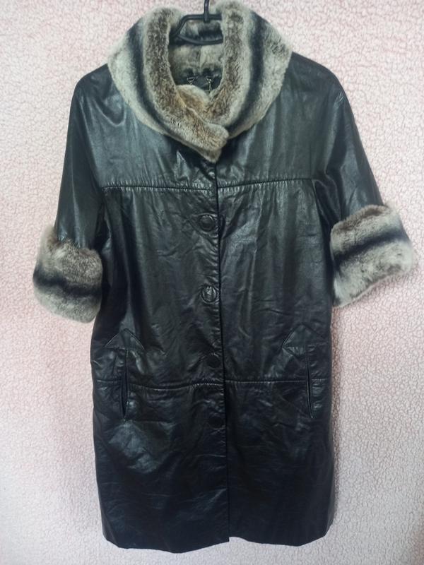 кардинал кожаный с натуральным мехом шиншиллы. Длина 98 см рукав 3/4 .ПОГ 50 см