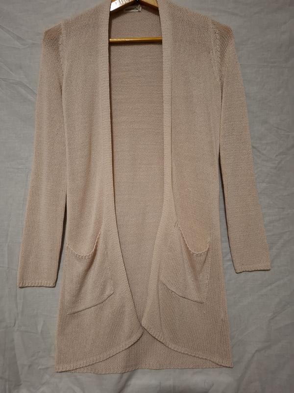 кардиган ,фасон без гудзиків,дрібна вязка.Довжина 90см,рукав 66см.плечі 34см.ог 43.