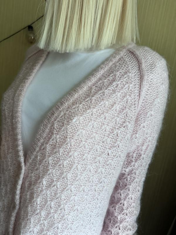 Шерстяной кардиган пудрового цвета( такой как на первых трех фото). Нежная, очень красивая вязка. Состояние идеальное. Мягкий, не колется. Не много тянется Длина 64 Рукав реглан 76 По груди 55 По рукава в сомом широком месте 15