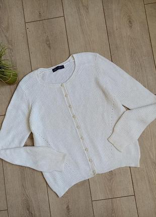 Кофта молочного відтінку. Розмір вказано 14/L. Орієнтуйтеся на заміри. Довжина кофти 57см. Напівобхват грудей 51см. Напівобхват низу(ризинки) 41см. Довжина рукава від горловини 76см. Склад 79%поліамід ,21%альпака . Стан ідеальний. Фото на тілі немає.