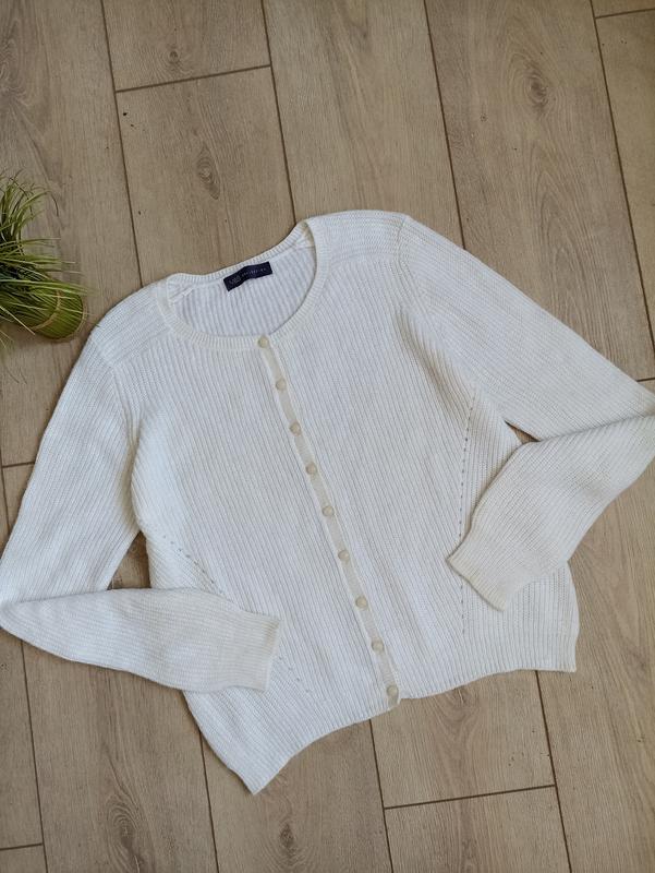 Кофта молочного оттенка. Размер указан 14/L. Ориентируйтесь на замеры. Длина кофты 57см. Полуобхват груди 51см. Полуобхват низа (рызинки) 41см. Длина рукава от горловины 76см. Состав 79%полиамид,21%альпака. Стан идеален. Фото на теле нет.