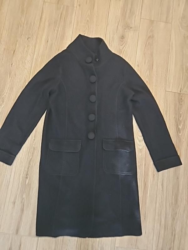 Черный шерстяной кардиган в красивом состоянии, без дефектов. Длина 98 см, ширина в груди 54 см, талия 53 см, бедра 58 см.