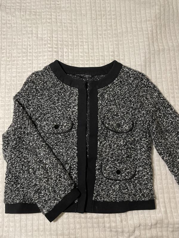 Кофточка теплая, в стиле короткий кардиган, серого цвета. Идеально подойдет на размер S. Рукав три четверти.