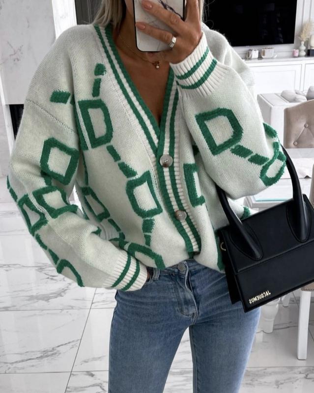 🌿Кардиган в принт плотной вязки, крой свободный Размер:S Замеры:ПОГ 57 см, длина 55 см, рукав от горловины 69 см