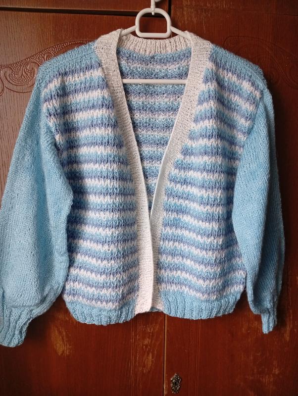 вязаный из полушерсти женский кардиган трехцветный на размер 44-46