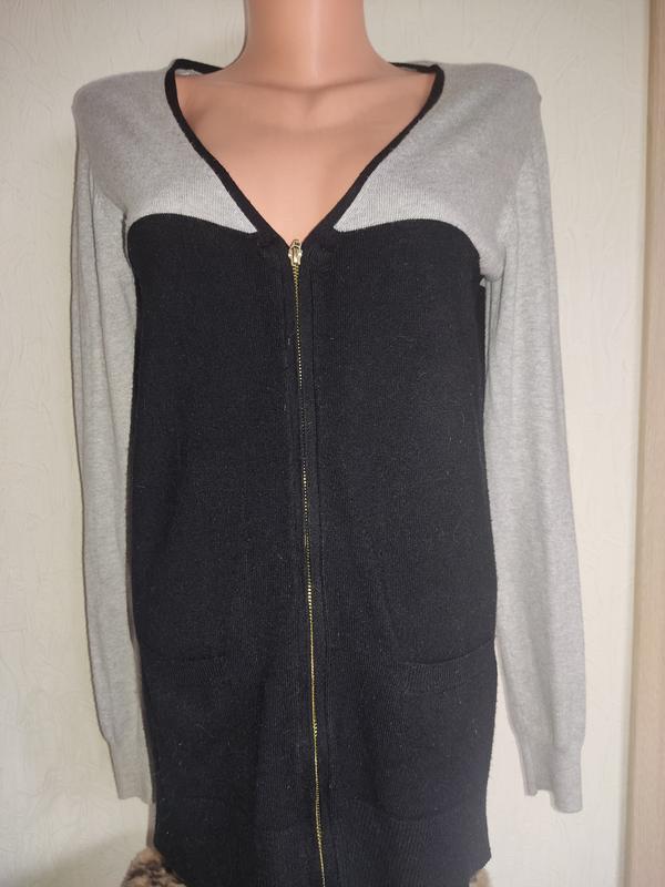 Кофта женская, р.12, удлиненная, на молнии, с карманами, цвет черно-серый